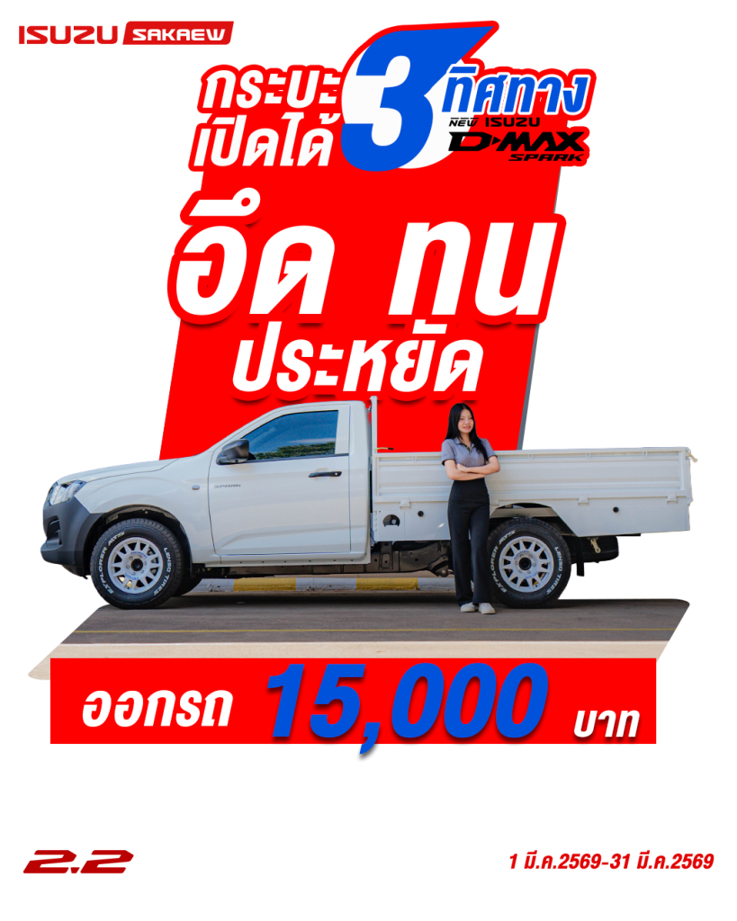 ใหม่! อีซูซุ ดีแมคซ์ สปาร์ค พร้อมกระบะพื้นเรียบ 2.2 Ddi MAXFORCE พิเศษ ราคาเริ่มต้น 558,000 บาท